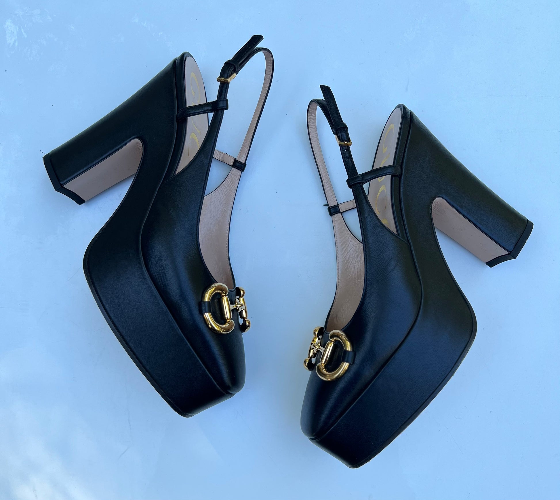 Black and gold horsebit slingback platform heel. Size 37.5. Excellent condition! Original price: $1100